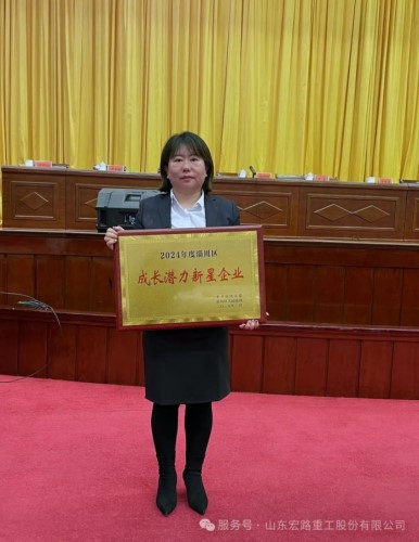 山東宏路重工股份有限公司榮獲了“2024年度淄川區(qū)成長(zhǎng)潛力新星企業(yè)”的榮譽(yù)!宏路股份董事會(huì)秘書王雪芳代表公司上臺(tái)領(lǐng)獎(jiǎng)。